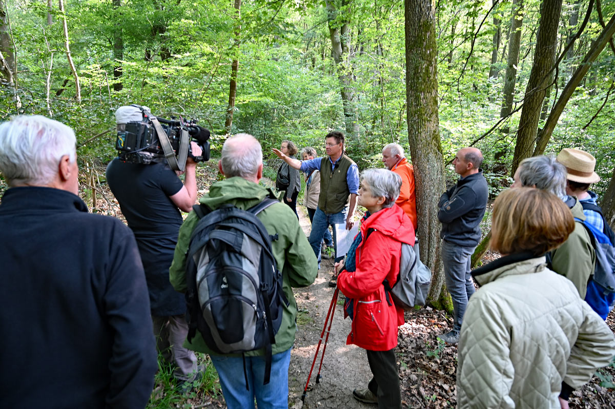So gab es auch für die Gruppe von zwölf Waldbegeisterten viel zu entdecken, die sich am 12. Juni auf Einladung der KLB Würzburg zu einer „Quer-Wald-ein“-Exkursion zusammengefunden hatte. Gut gerüstet und begleitet von einem Kameramann der Fernsehredaktion der Diözese Würzburg ging es nach der Begrüßung durch den KLB-Diözesanvorsitzenden Stefan Oppmann hinein in das „Heiligenhölzchen“.