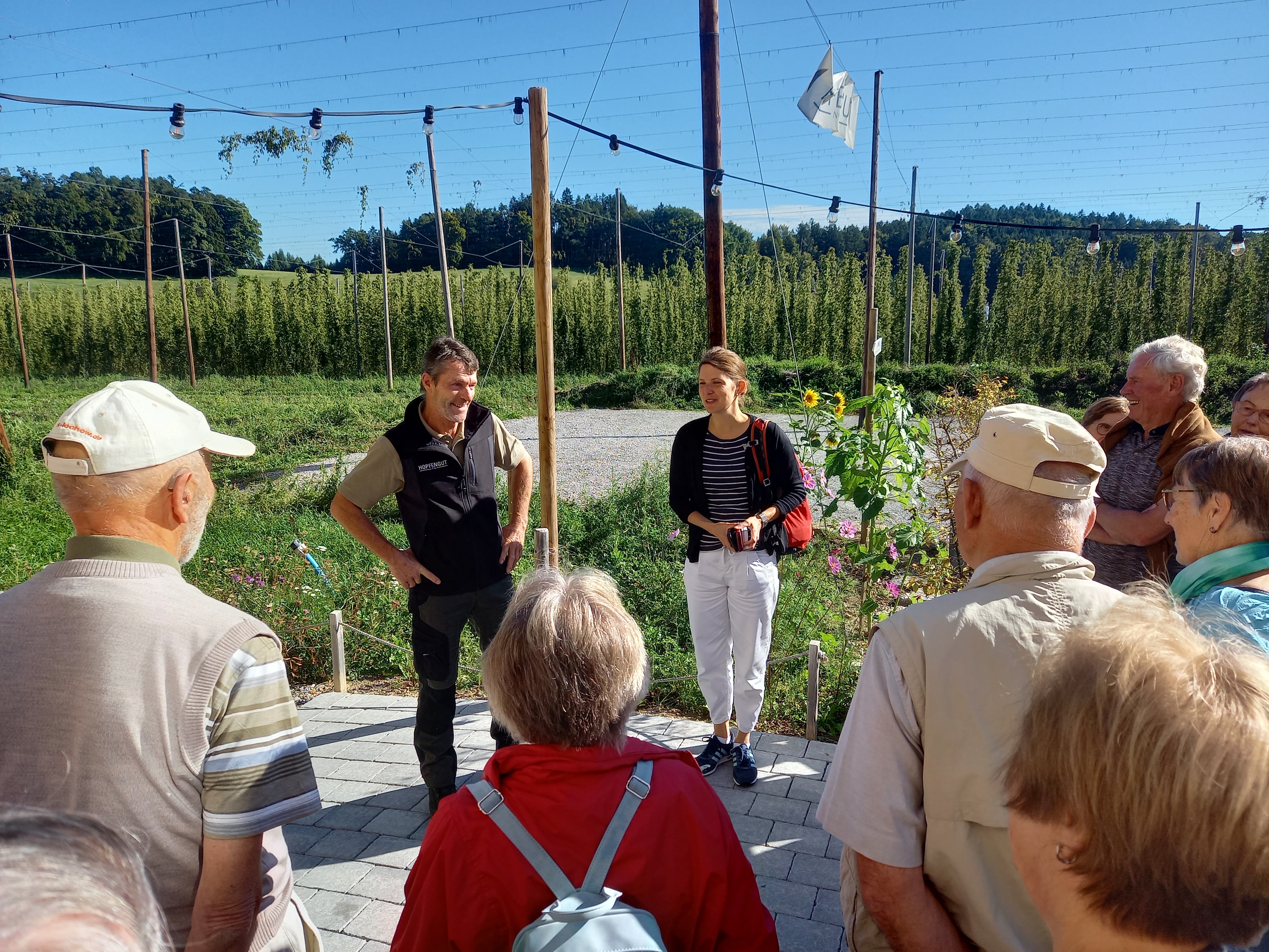 Bei herrlichem Wetter ging es tags darauf wieder Richtung Bodensee. In Tettnang war das Hopfengut No. 20 die erste Anlaufstation. Dort findet sich vom Hopfenanbau und -verkauf über die hauseigene Brauerei bis hin zu einem Gastronomiebetrieb alles unter einem Dach. Doch dann freuten sich alle auf die Fahrt auf den Pfänder bei Bregenz. Auf dem Berg herrschte Hochbetrieb und die Teilnehmer genossen die herrliche Fernsicht über den See bis zu den Alpen.