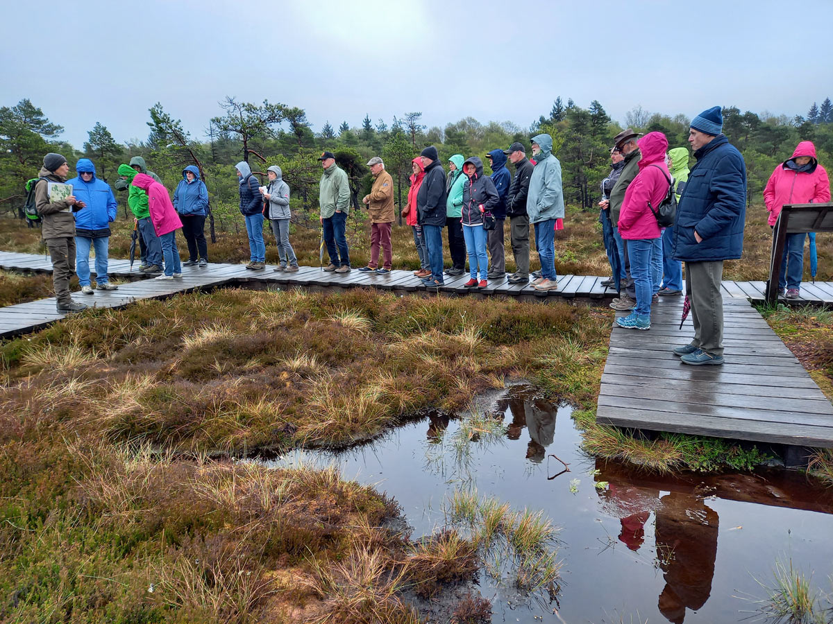 Auf der etwa eineinhalbstündigen Tour erfuhren die Teilnehmenden viele Details über das Leben in einem der besterhaltenen Moorgebiete Europas. Es handelt sich beim Schwarzen Moor um ein Hochmoor, das durch Regenwasser entstanden ist. Seit 1939 steht das rund 66 Hektar große Areal im Dreiländereck zwischen Bayern, Hessen und Thüringen unter Naturschutz und so konnte sich dort Flora und Fauna über Jahrzehnte ungestört entwickeln.