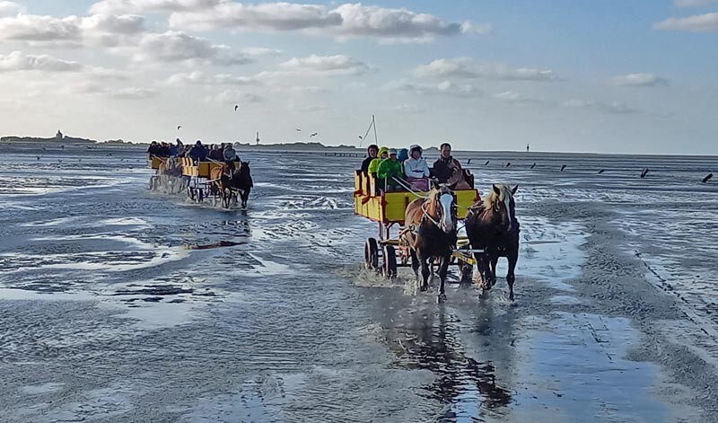 Mit der Pferdekutsche quer durchs Watt - für viele Teilnehmerinnen und Teilnehmer der KLB-Studienreise war es ein unvergessliches Erlebnis. Dabei standen zunächst die Zeichen gar nicht auf Entspannung. Bei der Schifffahrt über die bewegte Nordsee hin zur Insel Neuwerk wurden manche sogar seekrank. Aber als auf der Insel unverhofft die Sonne durch die Wolken brach, war alles Ungemach schnell vergessen.