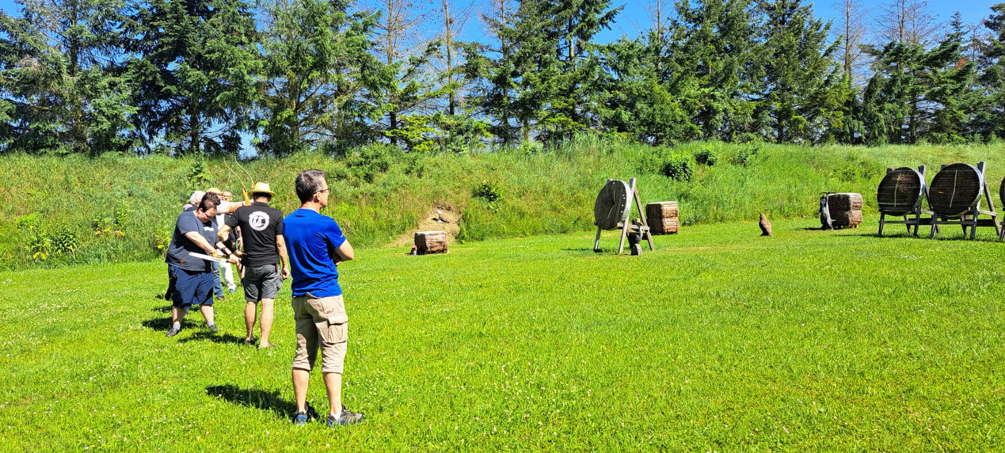 Viel Freude beim „Bogenschießen für Männer“ auf der Sportanlage der Bogenschützen in Kleinlangheim
